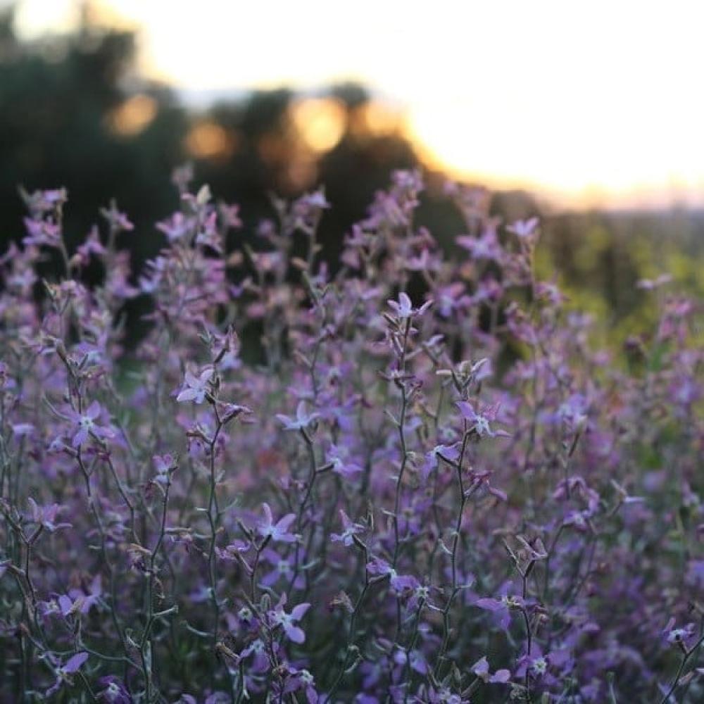 أزهارها كثيفة ذات لون أرجواني مشوب بالصفرة ولها أربع بتلات، تزهر في فصل الربيع.